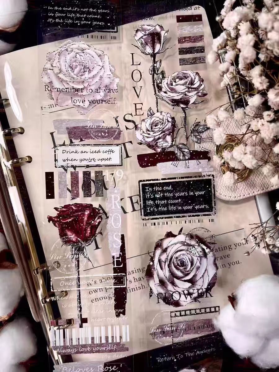 Journal PET tape (vintage flower) 5 meters/roll